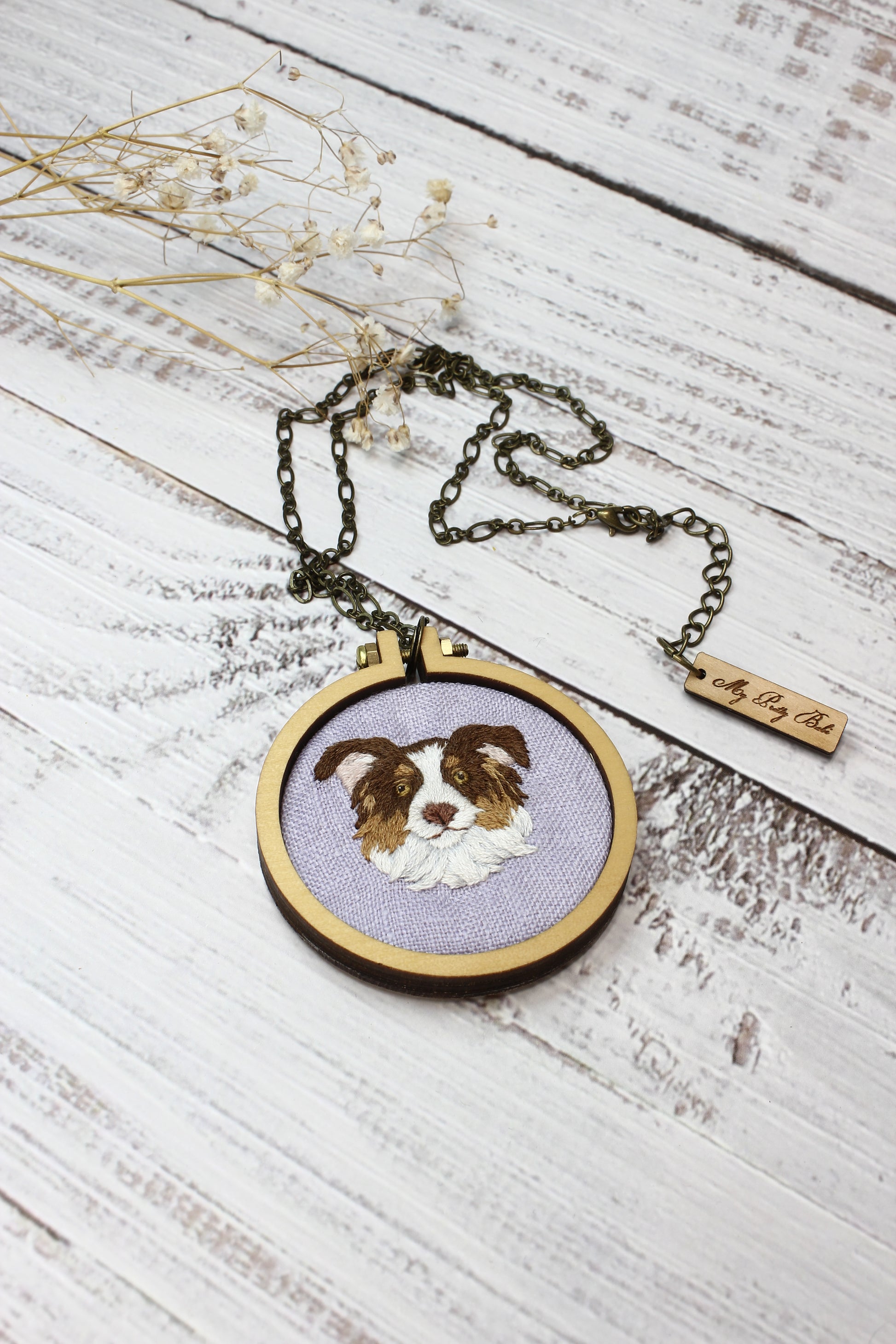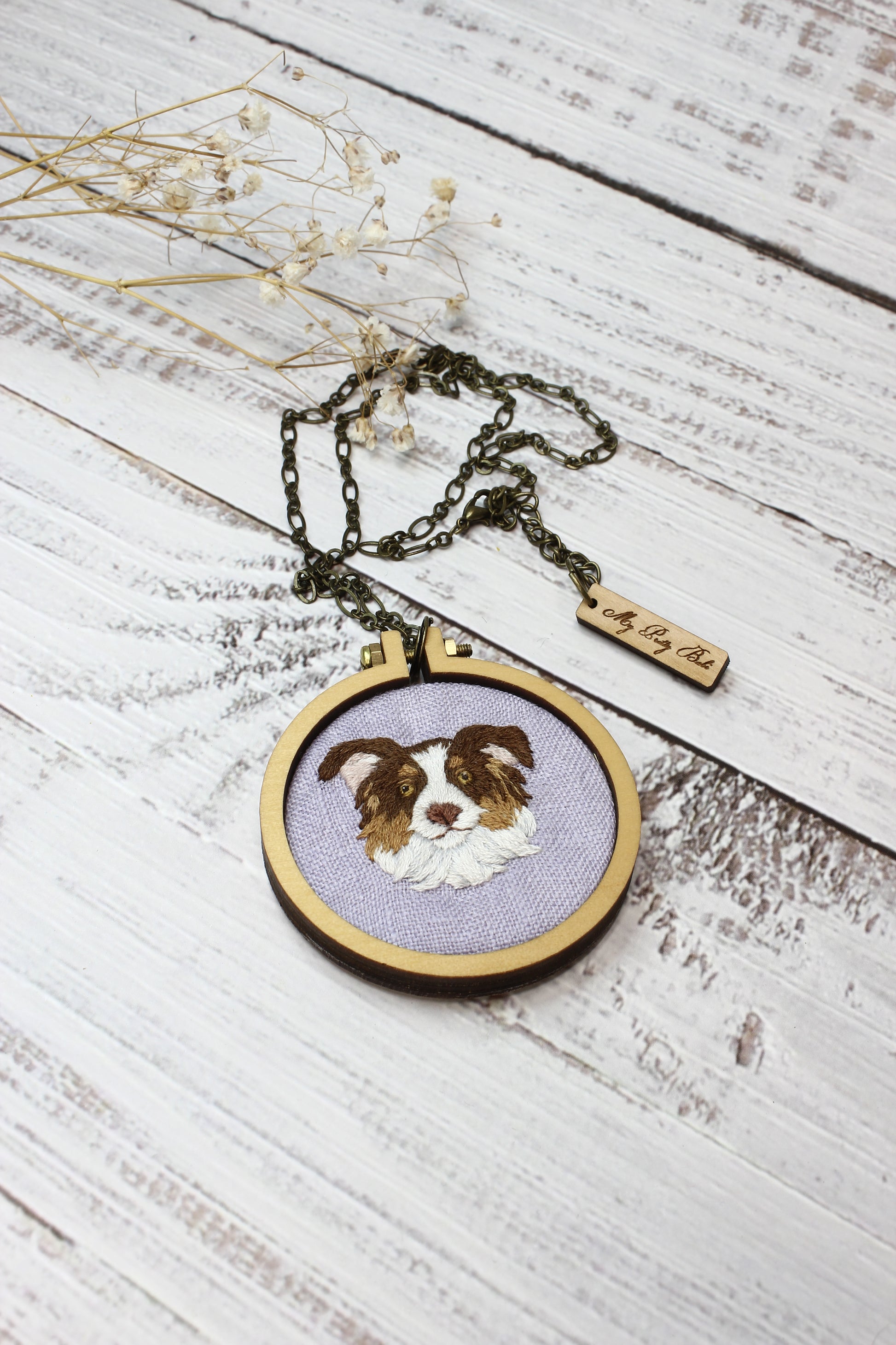 * This beautiful embroidered Aussie Shepherd necklace is made in a Dandelyne mini hoop pendant with inside measuring of 2.2" with a chain with a length of 20" (58 cm)