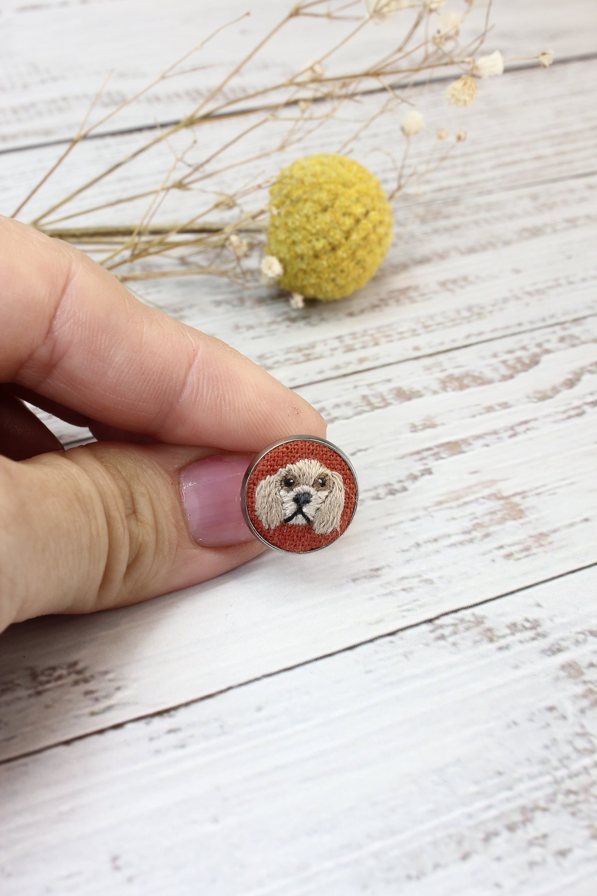 * These Cocker Spaniel embroidered studs earrings are made in a Stainless Steel Bezel