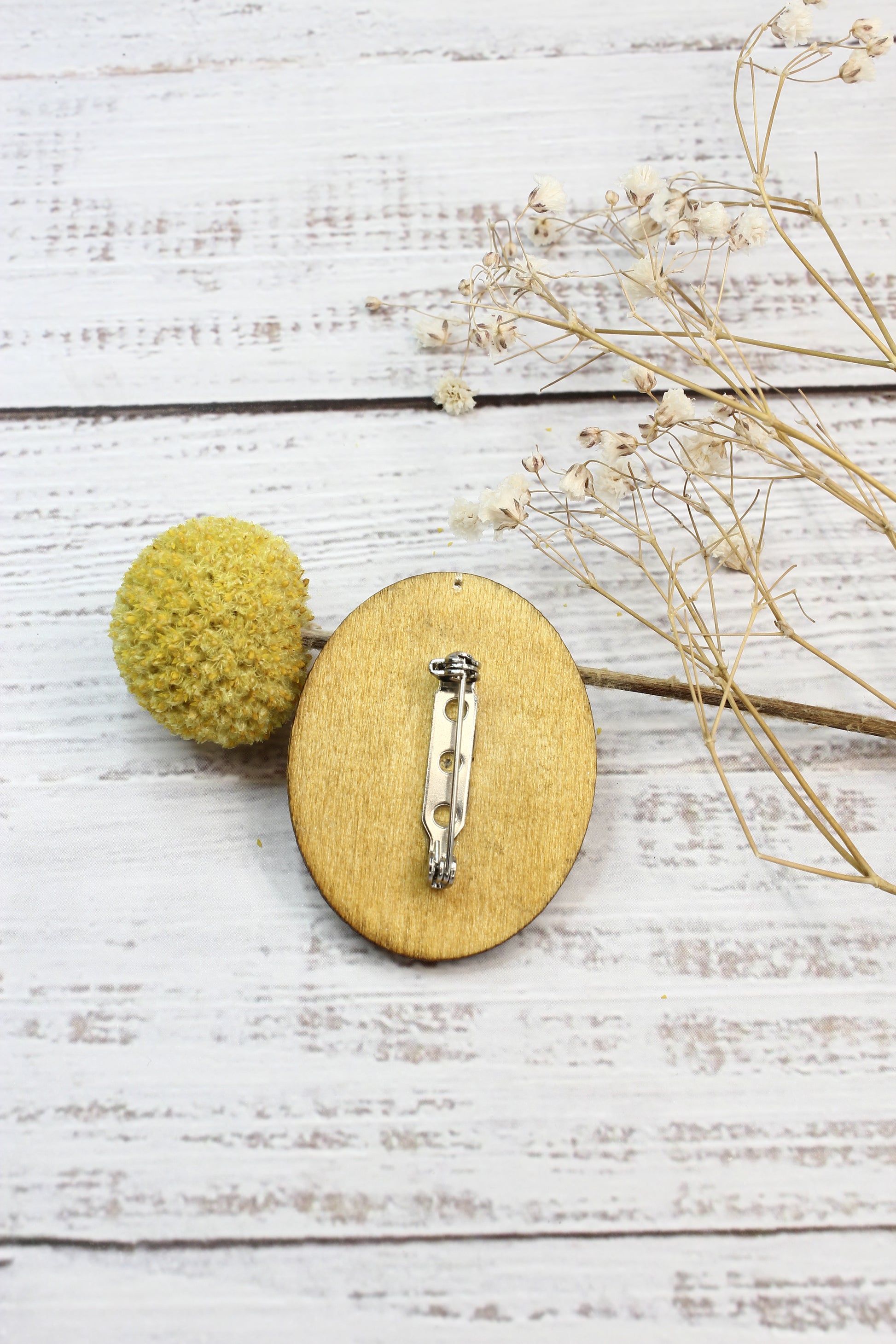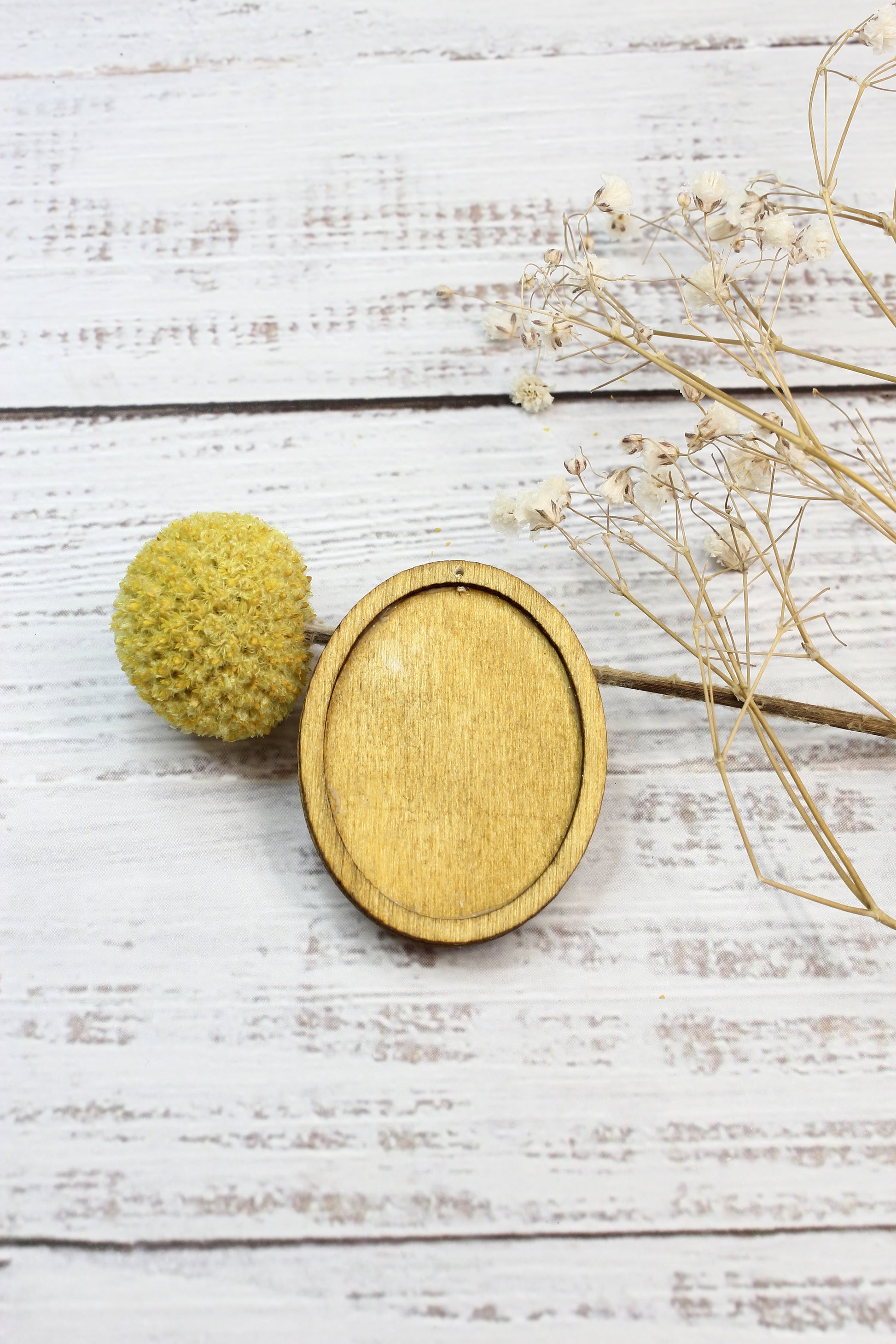 * A wood brooch with inside measuring of 1 1/2" Length and 1" inside Width