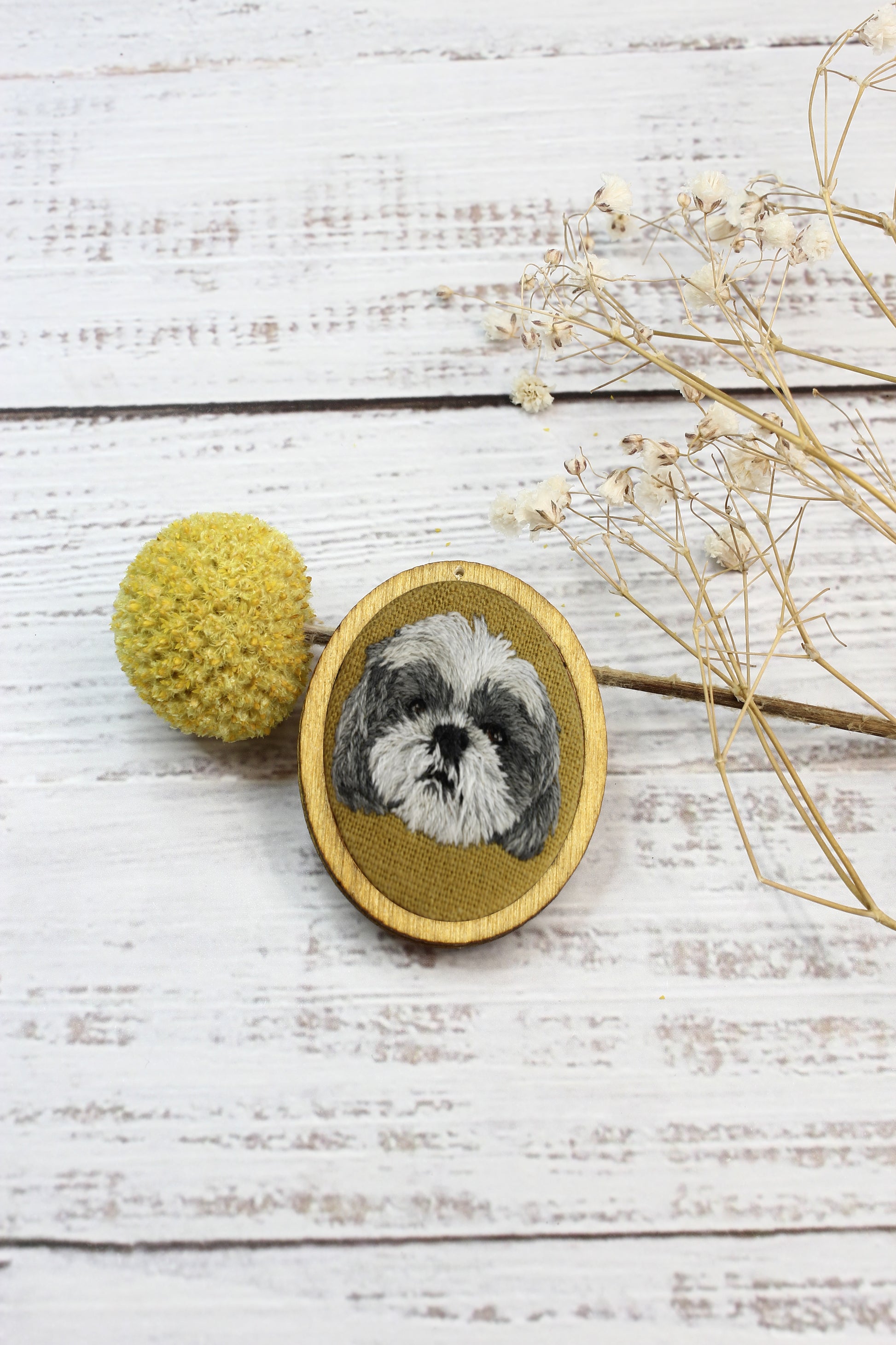 Embroidery Custom Pet Portrait | 1 1/2" Oval Brooch