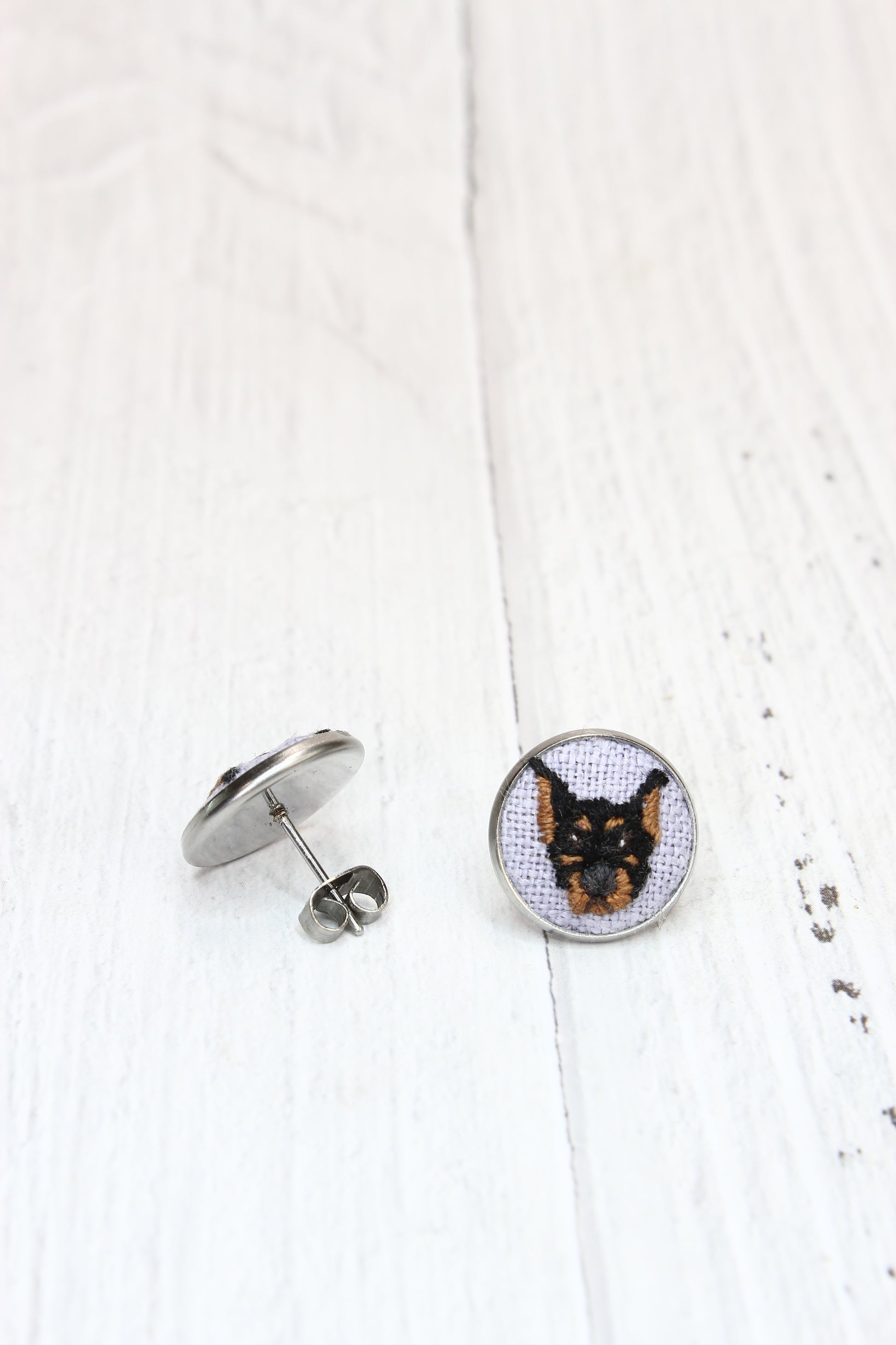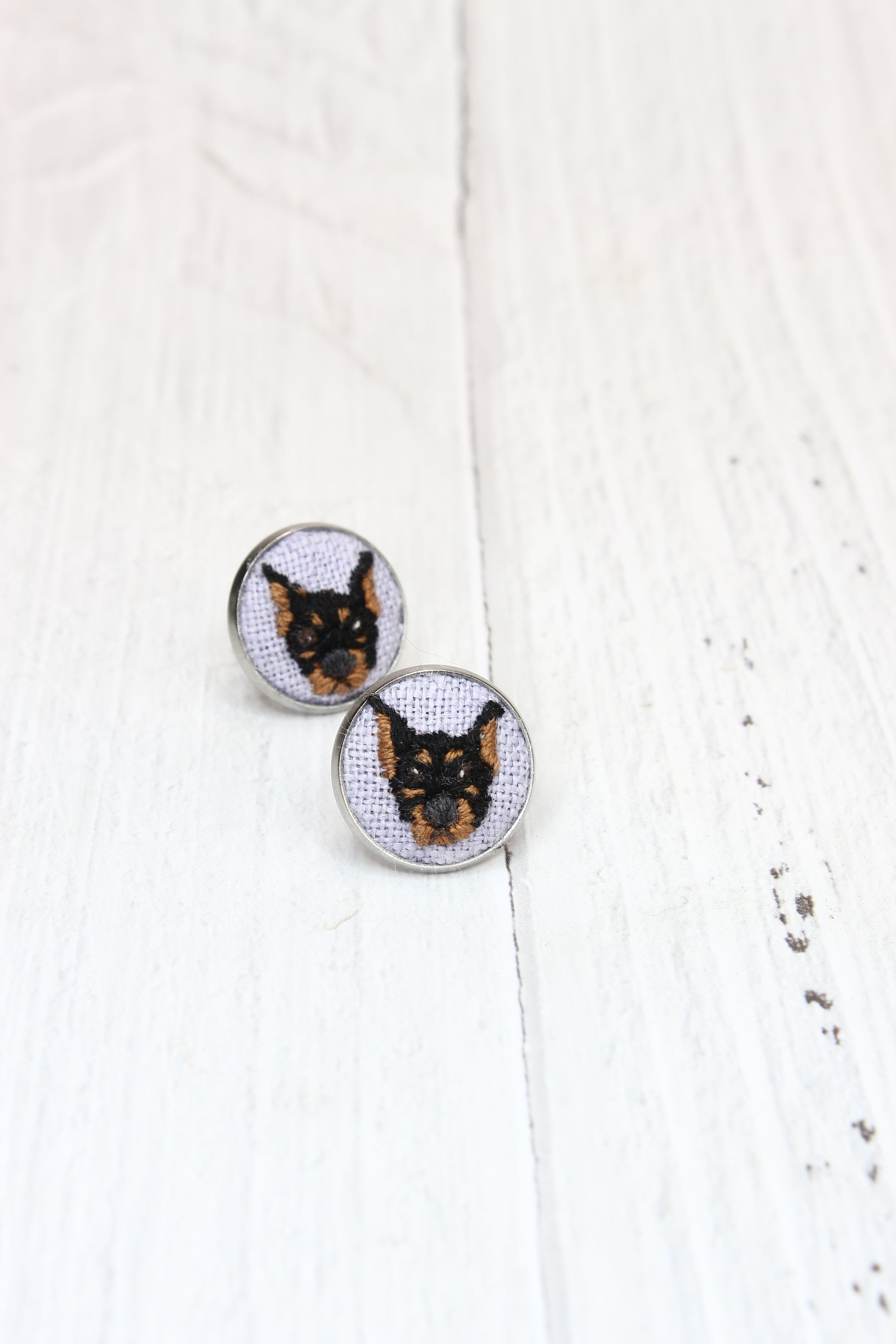 * These Doberman embroidered studs earrings are made with a Stainless Steel Bezel