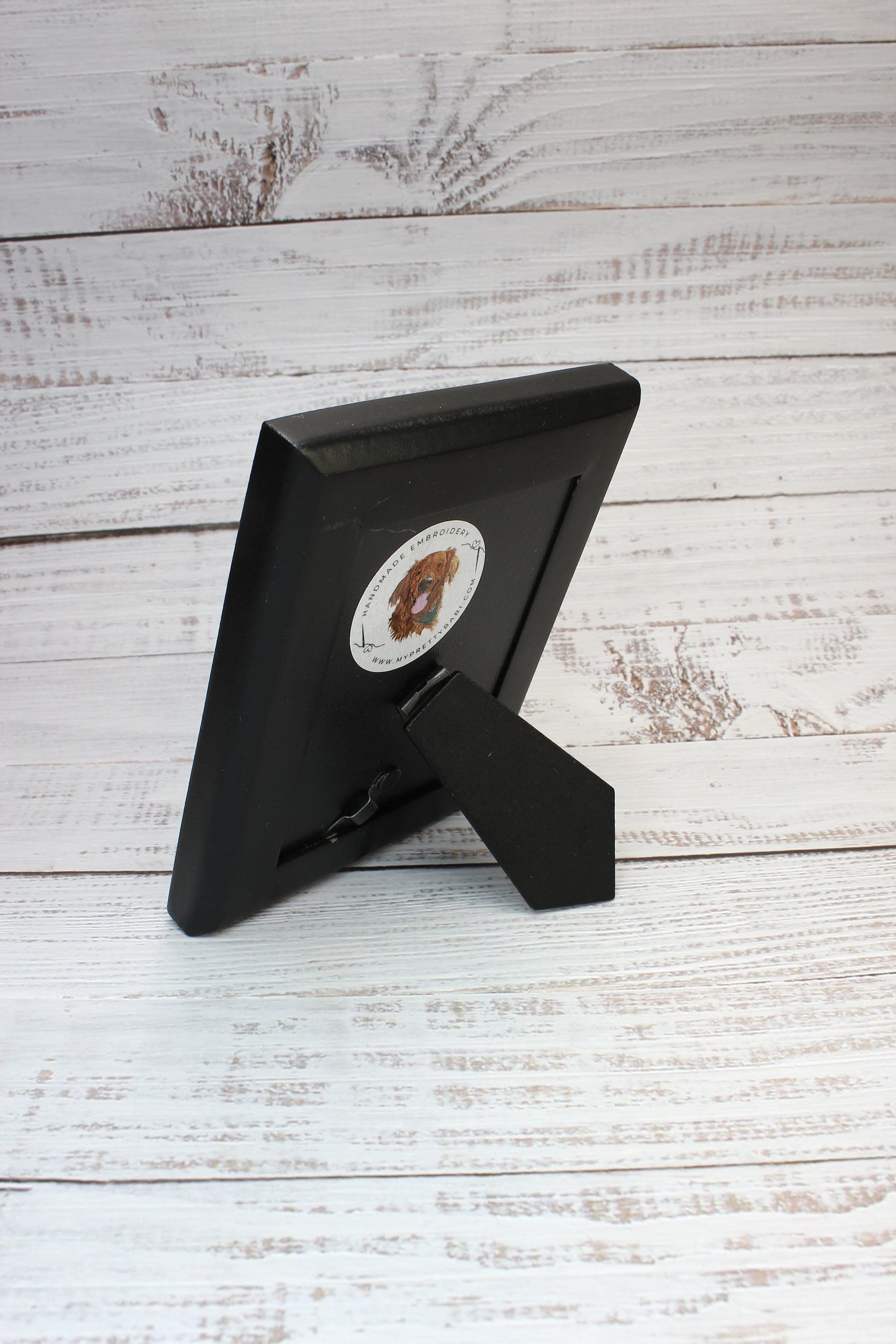 * This beautiful outlined Cat is framed on a black frame made with 100% cotton embroidery floss in a light cream Linen fabric