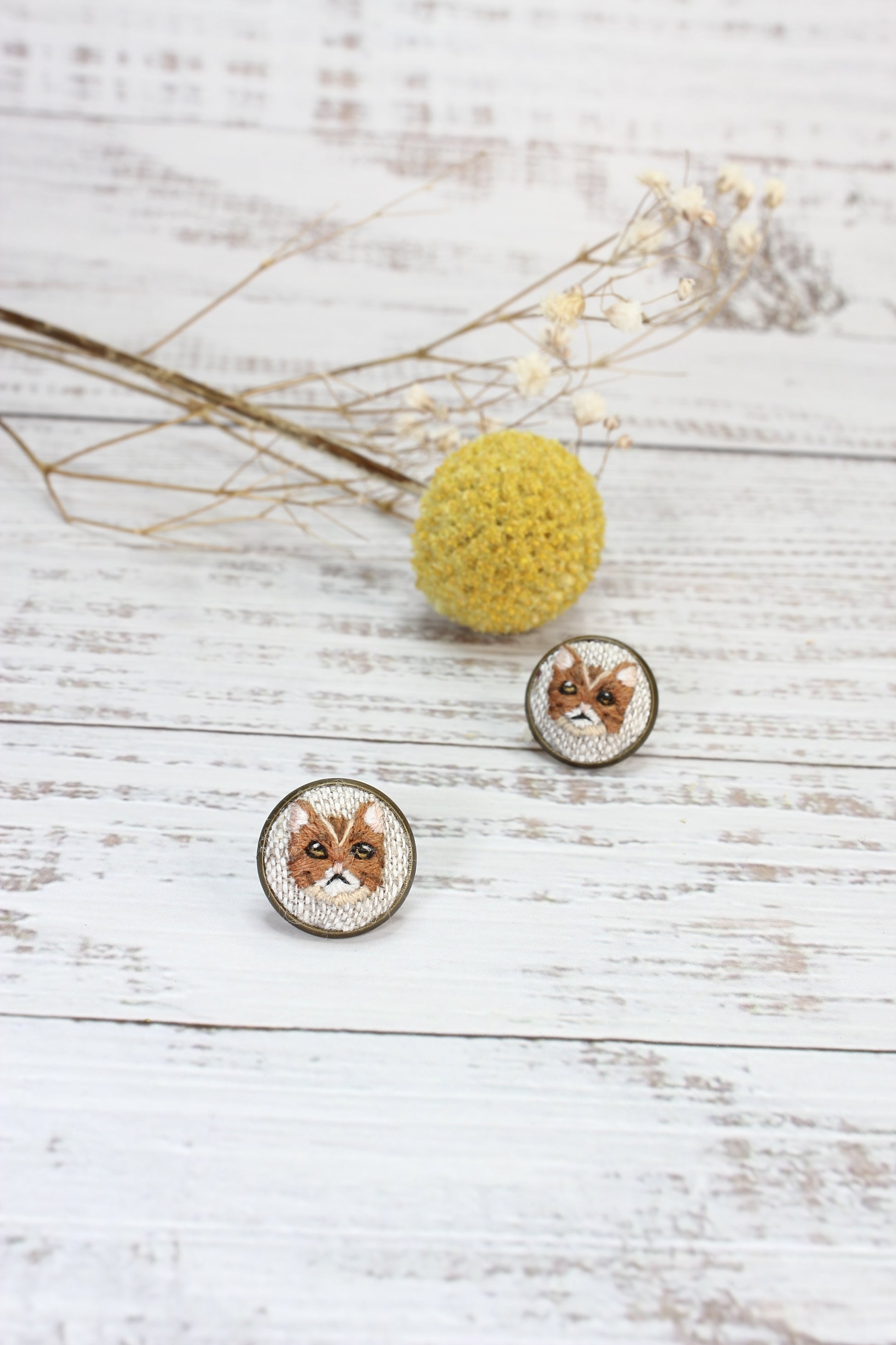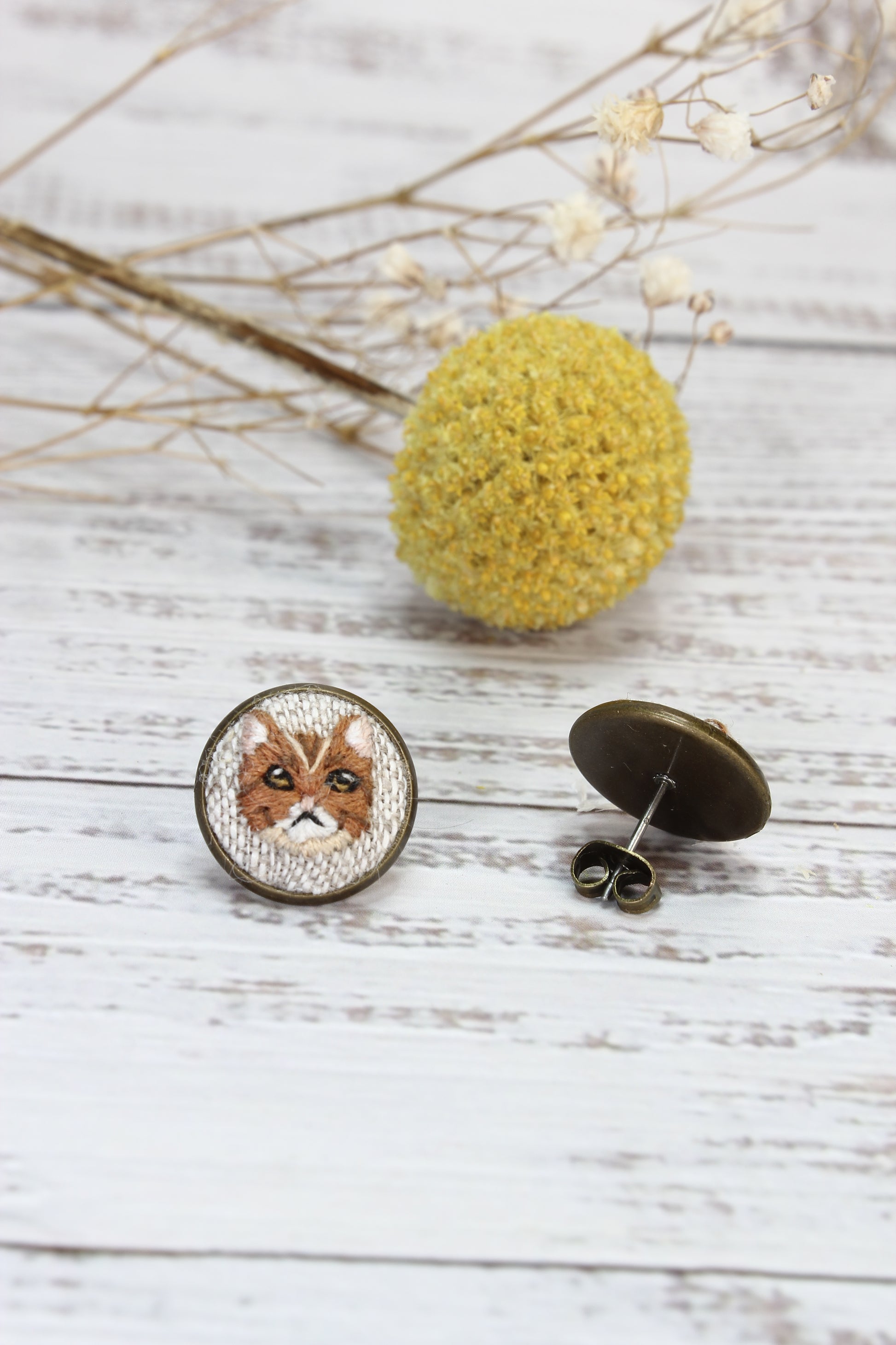 * These Embroidery Orange Cat Studs Earrings are made in an Antique Bronze Bezel