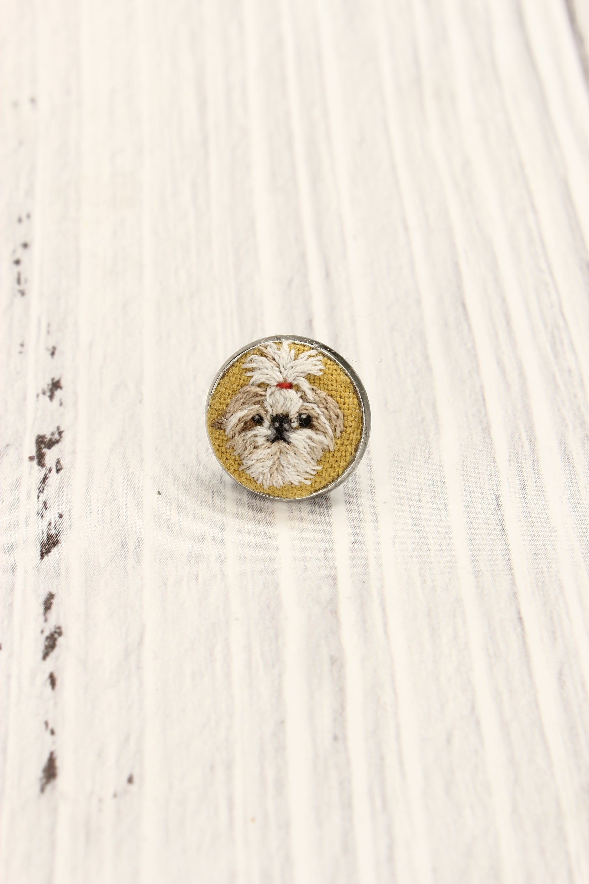 * These Shitzu embroidered studs earrings are made in a Stainless Steel Bezel