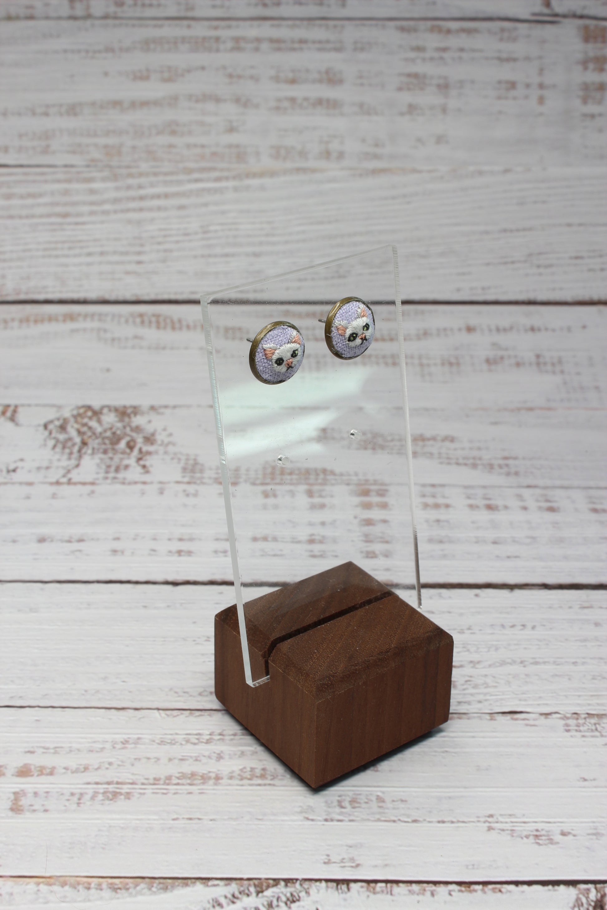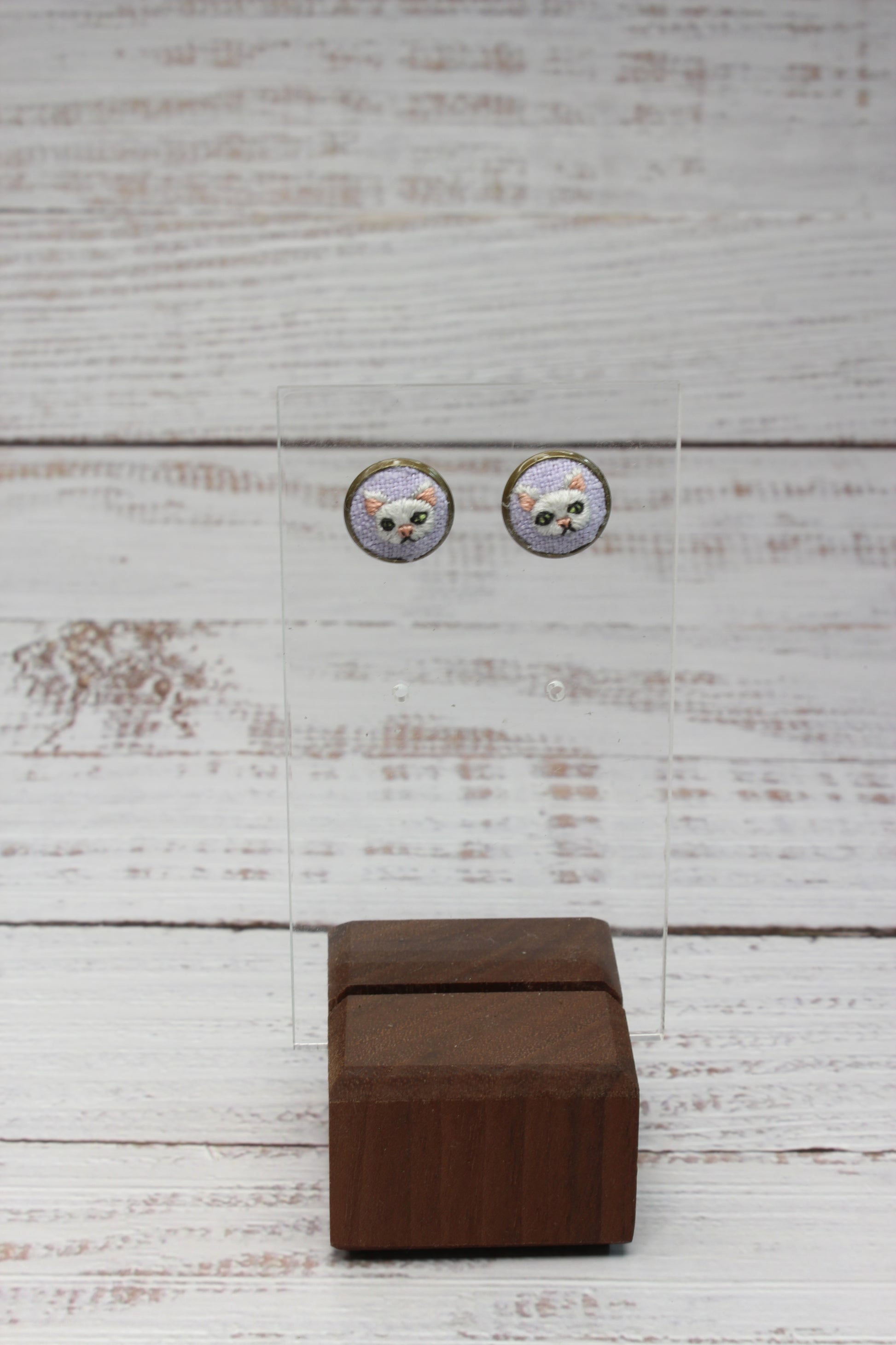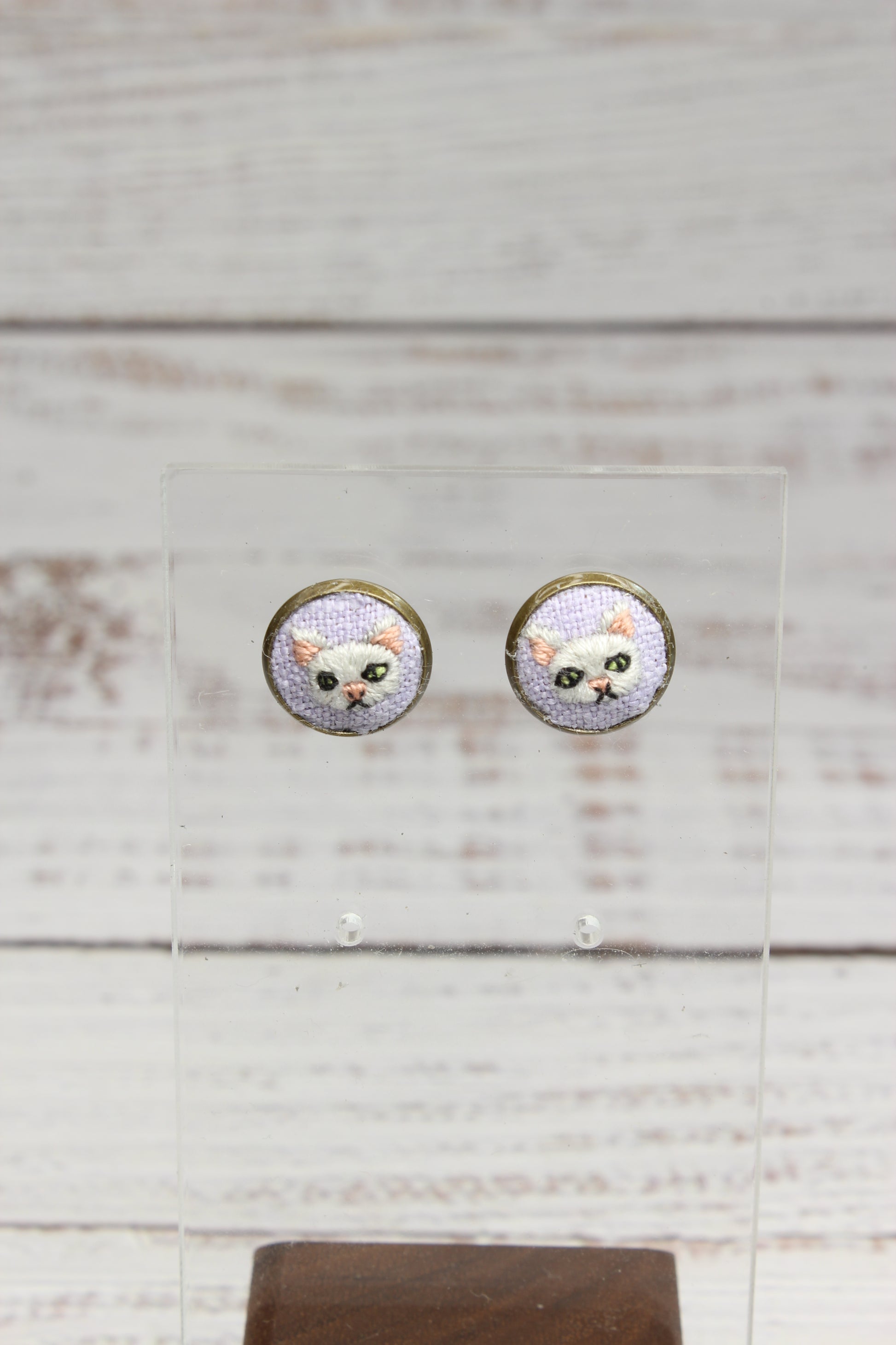 Embroidery White Cat Studs #23