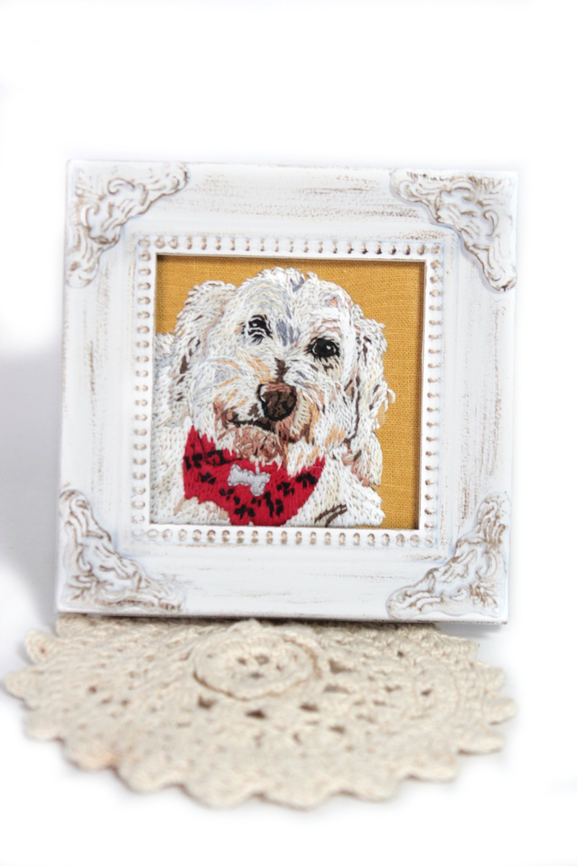 Reserved Listing for Erin Graham | Embroidery Custom Pet Portrait | 3" White Square Frame